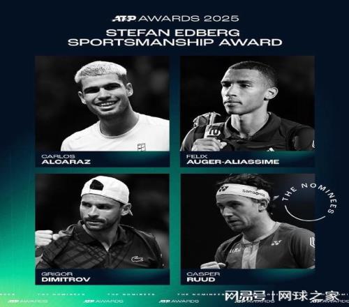 斯蒂芬-埃德伯格体育风尚大奖的提名是阿尔卡拉斯、阿利亚西姆、迪米特洛夫、鲁德。这三个奖项中,年度突破球员和斯蒂芬-埃德伯格体育风尚大奖由国际网球记者协会提名,由ATP世界第一俱乐部投票选出最终获奖人;最佳教练奖则由ATP教练协会投票选出。您觉得谁能最终胜出呢?